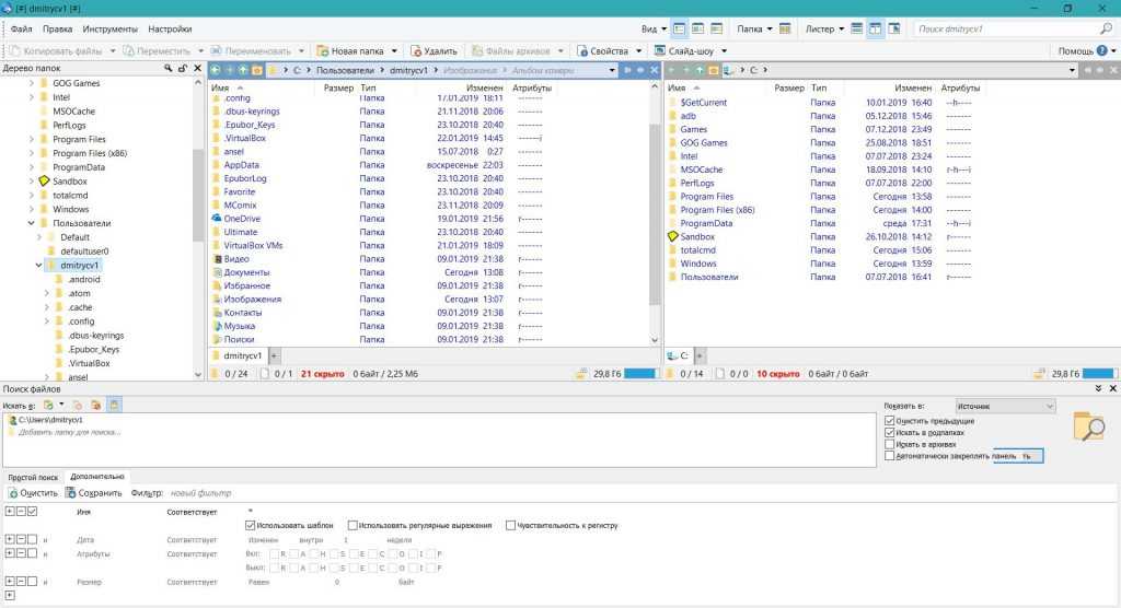 У Directory Opus много возможностей, но довольно загруженный интерфейс. Впрочем, это можно поправить, поковырявшись в настройках. Программа содержит встроенный просмотрщик документов и изображений, может искать дубликаты файлов и конвертировать изображения. По умолчанию работает в двухпанельном режиме, поддерживающем вкладки.