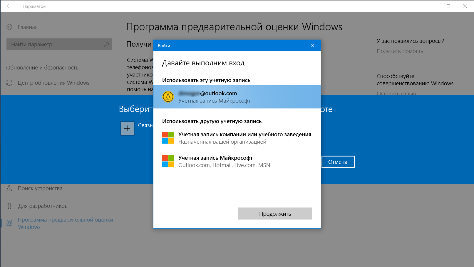 5. Выберите свою учётную запись и нажмите на кнопку «Продолжить».