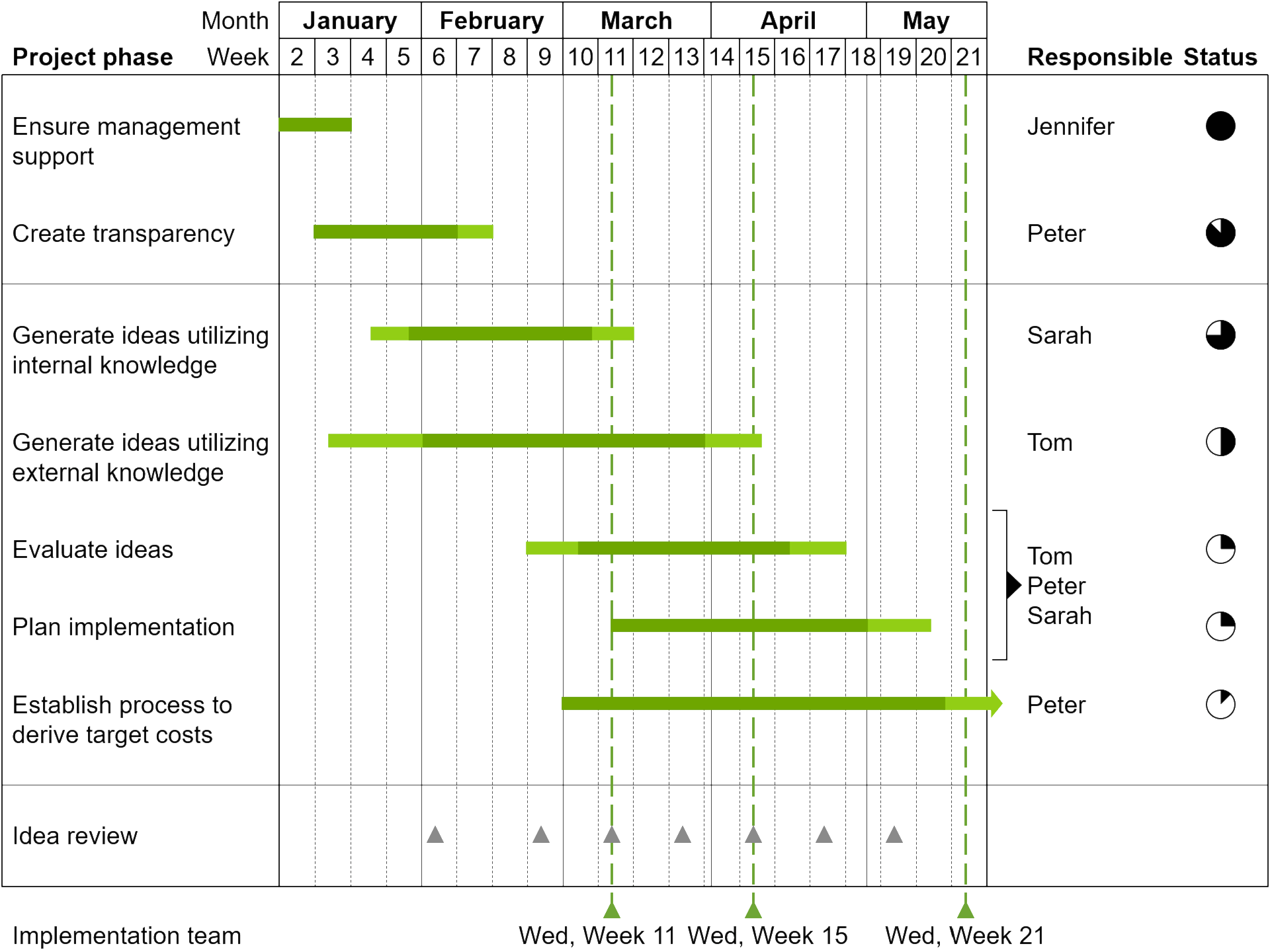 - Составление календарного плана проекта по совершенствованию и оптимизации бизнес-процессов, утверждение требований и сроков с клиентом или ТОП-менеджером по стратегическому развитию;