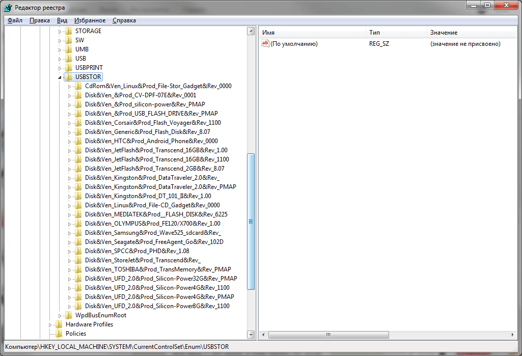 HKEY_LOCAL_MACHINE\SYSTEM\CurrentControlSet\Enum\USBSTOR\