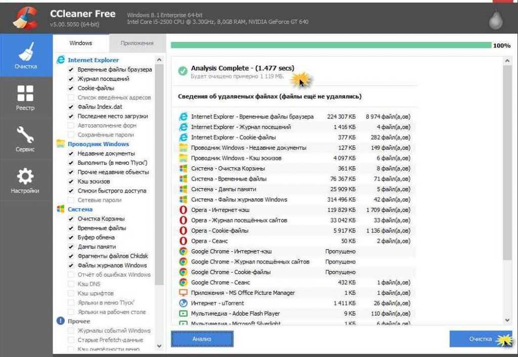 Это также простая в применении программа, она при открытии предоставляет выбор анализа мусора, утилита и прочего хлама или по пунктам выставление галок с целью удаления из программы (а также деинсталляции – из компьютера).