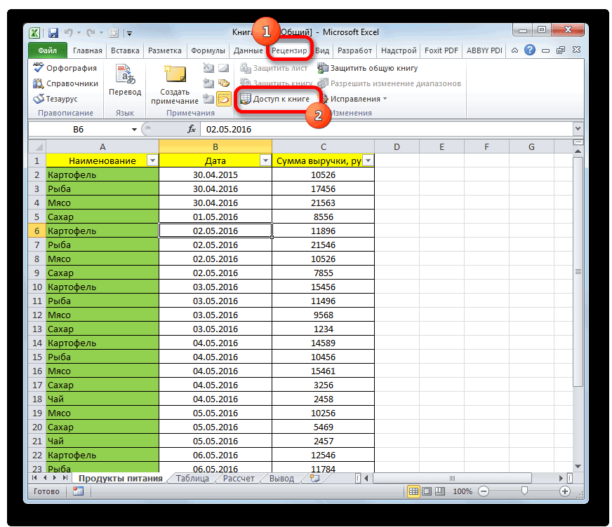 - Переходим на вкладку «Рецензирование». Диалоговое окно «Доступ к книге».