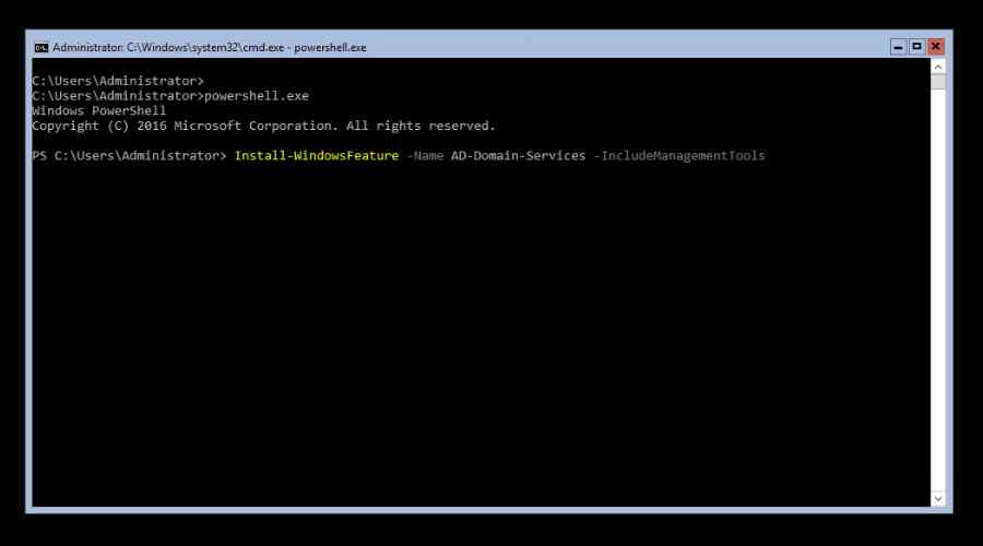 Install-WindowsFeature -Name AD-Domain-Services -IncludeManagementTools