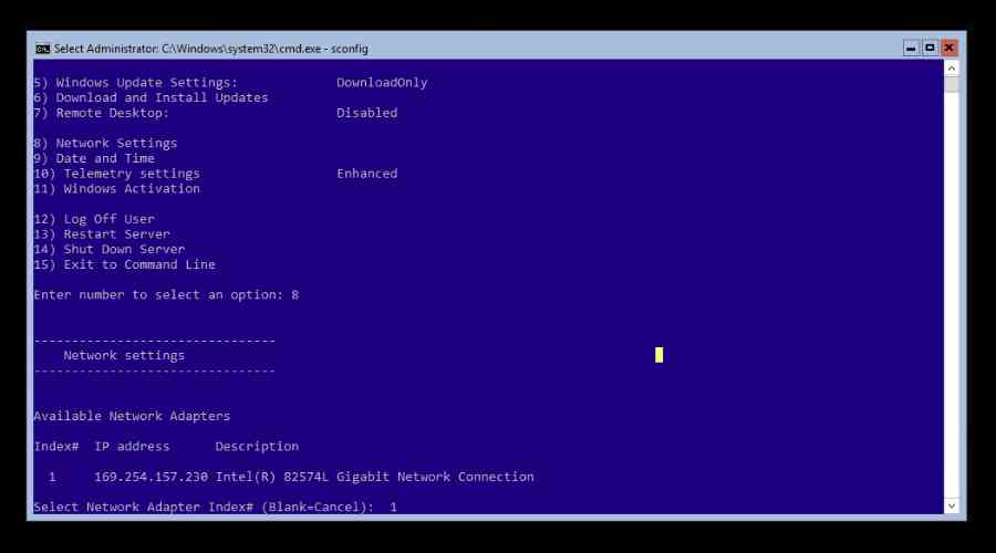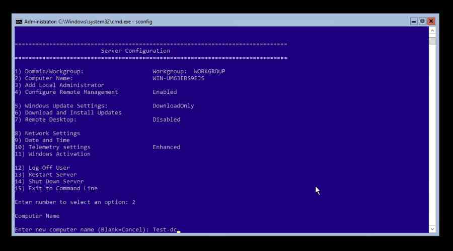 Через SConfig можно выполнить настройку сети и других свойств системы, но мы не будем на этом останавливаться, поскольку все эти настройки мы выполним более удобным способом. Мы изменим только имя компьютера, с автоматически сгенерированного на более информативное.
