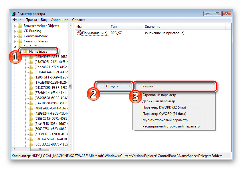 В папке NameSpace на любом пустом месте нажмите правой кнопкой мыши и создайте новый раздел.