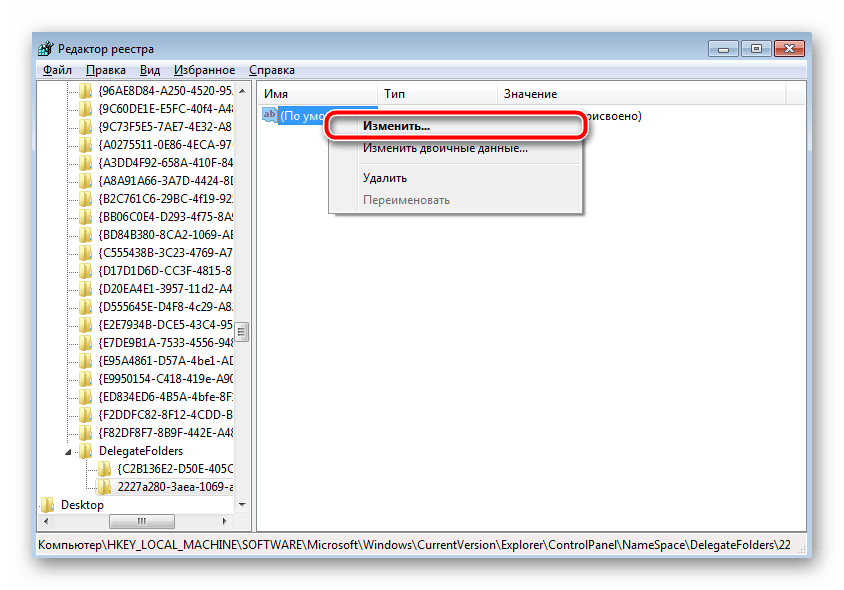 В нем будет находиться лишь один параметр «По умолчанию». Кликните по нему ПКМ и выберите пункт «Изменить».