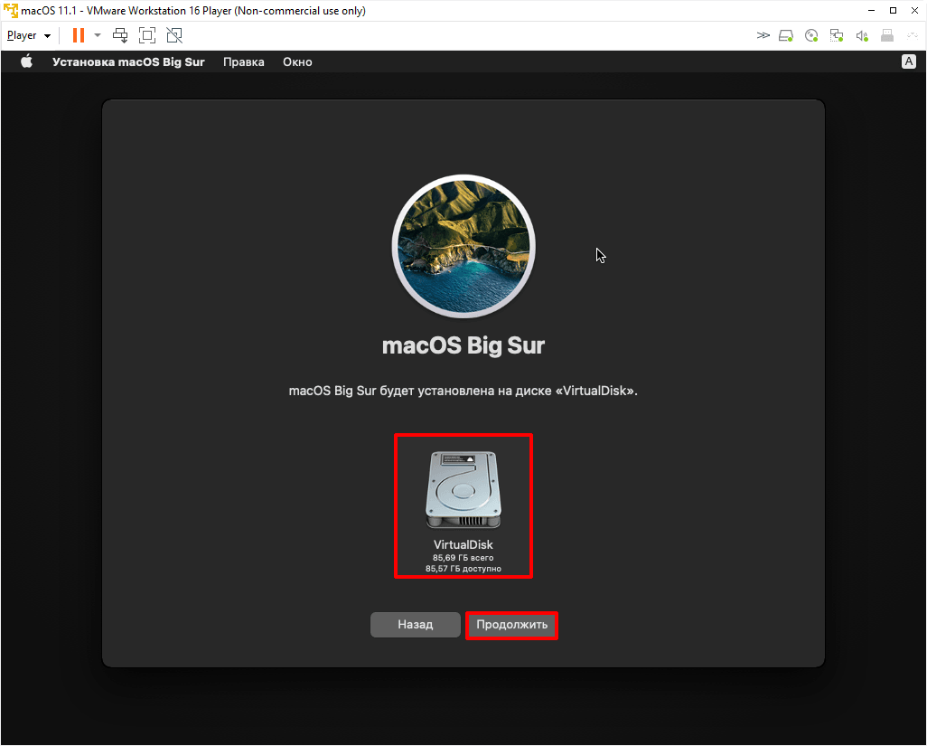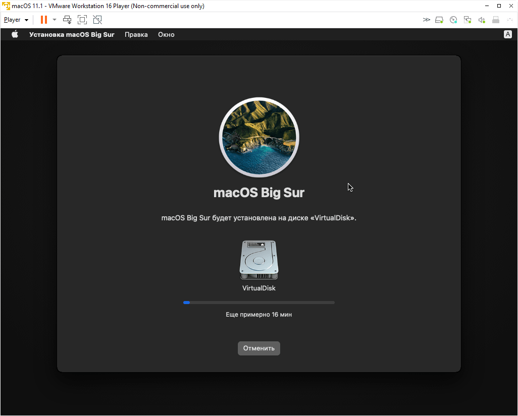 Готово, вы установили macOS на виртуальную машину VMware Workstation Player.