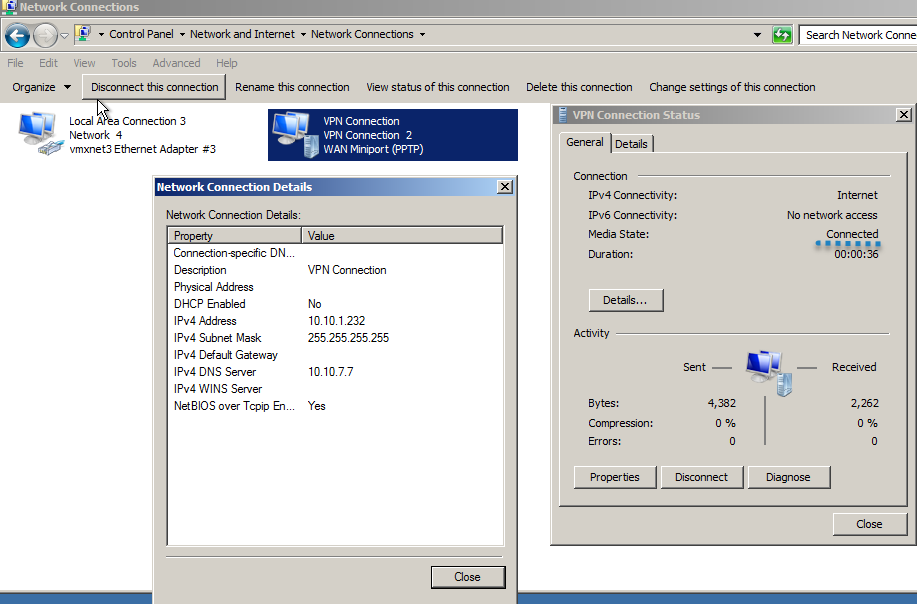 Теперь мы видим, что настройка прошла успешно и можно пользоваться ресурсами локальной сети, к которой подключились через VPN соединение!!!
