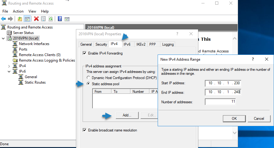 Usually, there is a DHCP server within a company environment. If that’s not the case, you’ll have to add a static address pool.