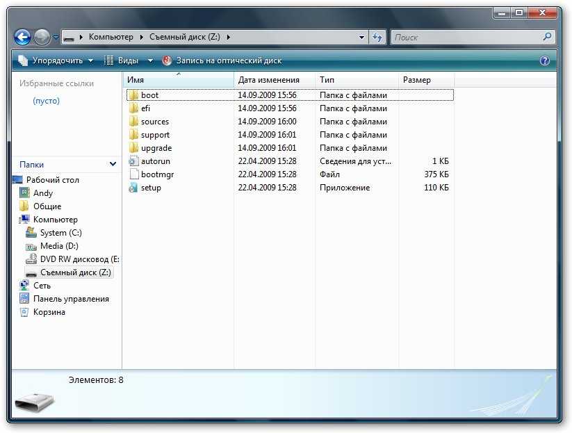 В результате на вашем съемном носителе должны появиться такие файлы: