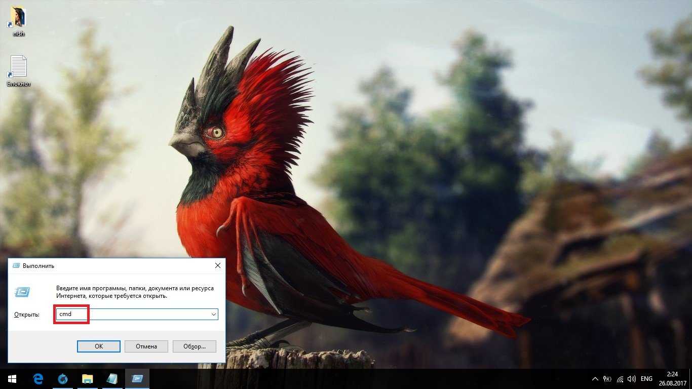 Чтобы открыть «Командную строку», нажмите Win + R и в окне «Выполнить» введите команду cmd