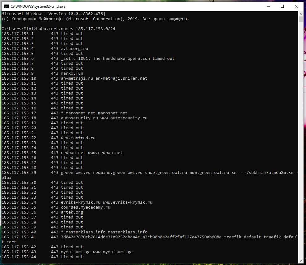 Как видите, команда напечатает список имен хостов вместе с их IP и MAC-адресами.
