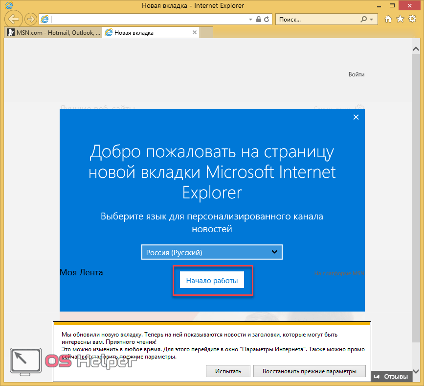 После этого появится новая вкладка вот с таким содержанием. Кликните на «Начало работы».