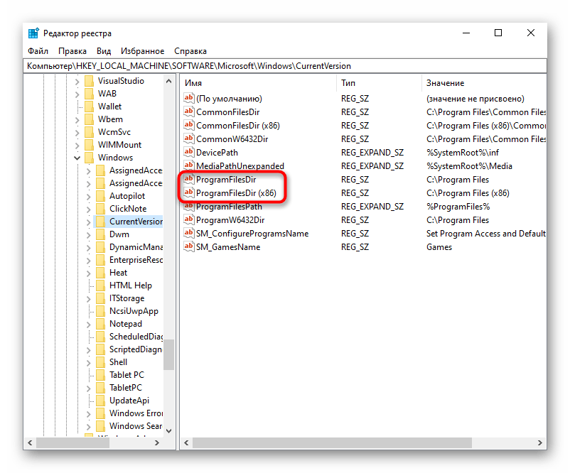 Сперва понадобится выбрать параметр «ProgramFilesDir», а потом — «ProgramFilesDir (x86)». Если система 32-битная, то редактироваться будет только последний параметр.