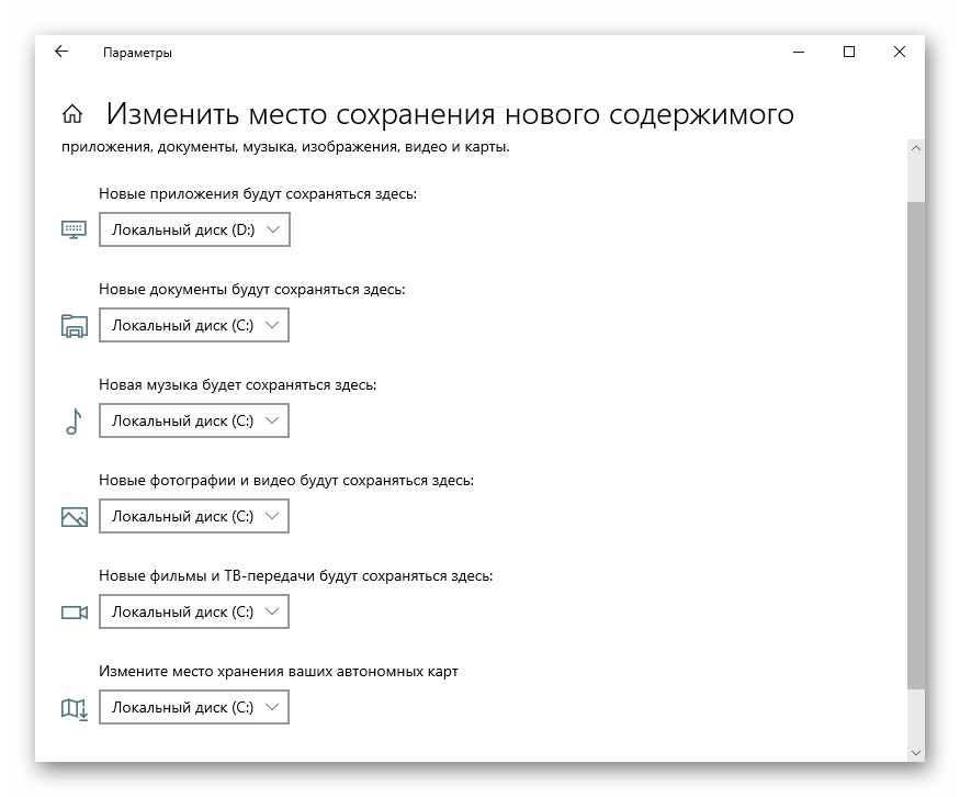 Сейчас практически у всех пользователей жесткий диск разбит на два логических (C и D), либо этими буквами именуются действительно два разных накопителя. В обоих случаях, особенно в связке SSD + HDD, где твердотельный накопитель маленького объема, на системном диске C рано или поздно перестает хватать места для скачивания любых пользовательских файлов. Операционная система Windows 10 позволяет изменить их место сохранения на диск D. После этого критически важные обновления для ОС продолжат скачиваться на C, а вот все малозначимые и не влияющие на работоспособность Виндовс файлы начнут сохраняться на D.