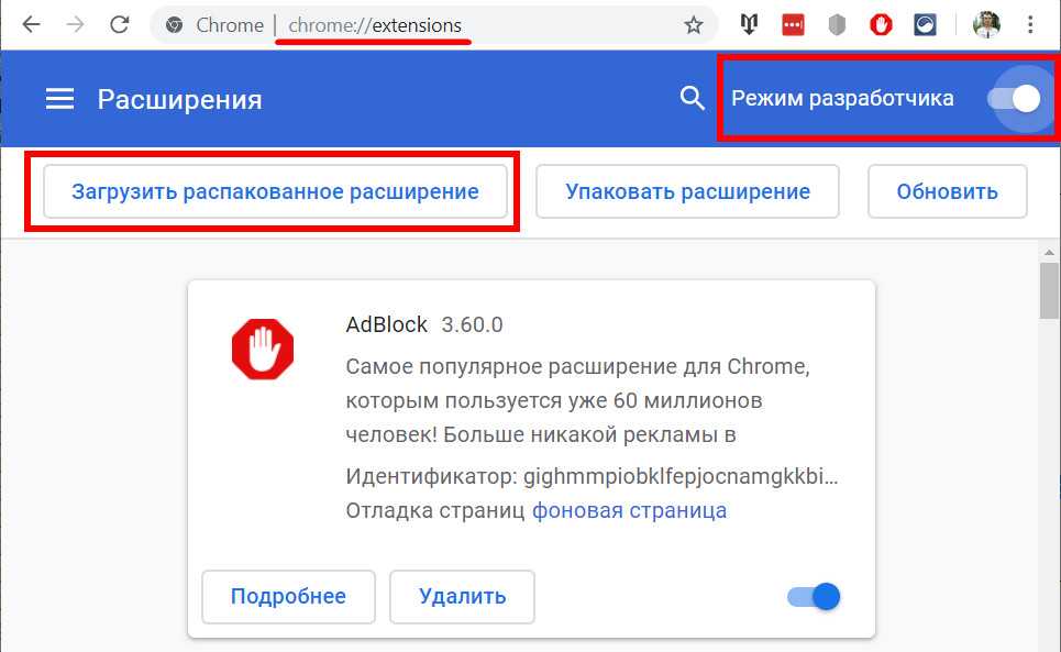 Если вы не нашли расширение в магазине Google, то скачайте его по этой и распакуйте архив. Затем введите в строку браузера chrome://extensions включите режим разработчика и загрузите распакованное расширение.