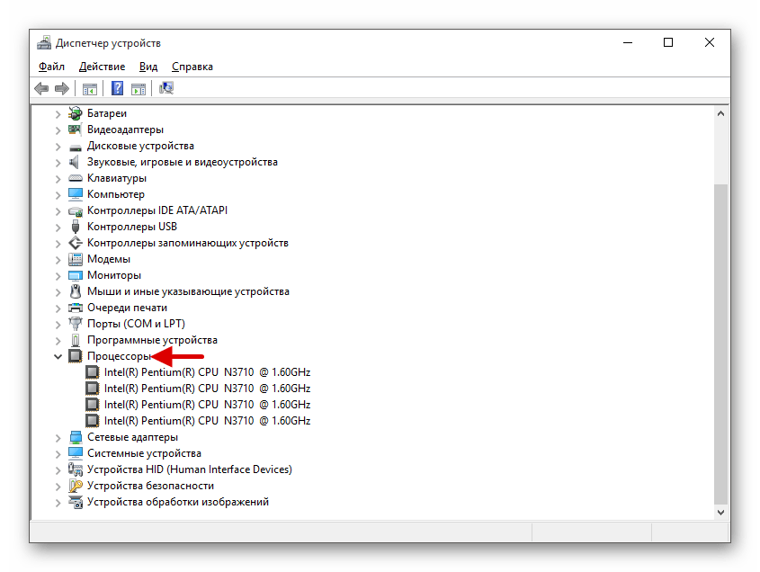 Находим вкладку «Процессоры» и раскрываем ее. Сколько там пунктов находится, столько и ядер на вашем процессоре.