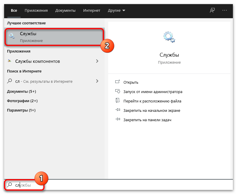 - Откройте «Пуск» и через поиск отыщите «Службы».