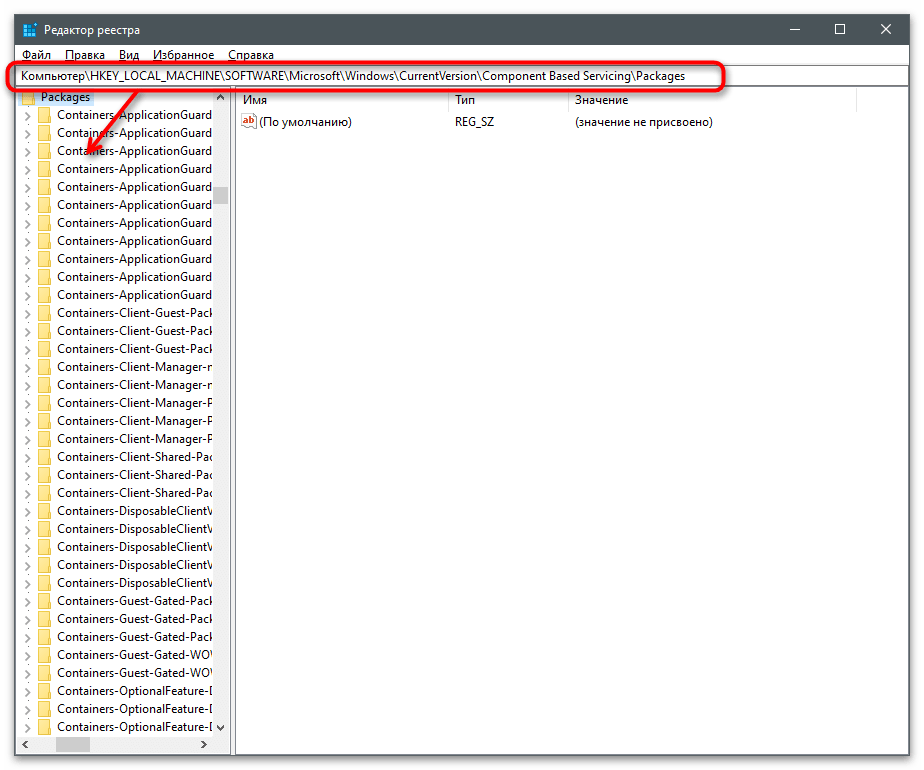 В «Редакторе реестра» перейдите по пути и найдите пакет с названием строки с ошибкой. В нем расположен файл со значением ошибки, которая была обнаружена в файле ранее. Удалите его и перезапустите компьютер.