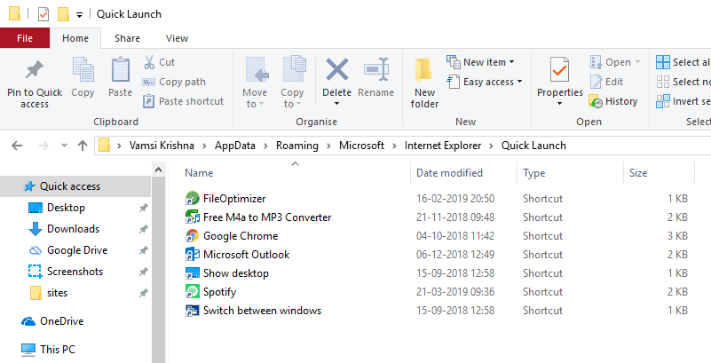 In Windows 10, Microsoft added a new toolbar called Links. This is very similar to the Quick Launch toolbar. The difference is that it is readily available in the toolbars list and the Links folder is located in a different location in the File Explorer. This toolbar is useful if you want to start with a blank slate so that you can add your own program and folder shortcuts.