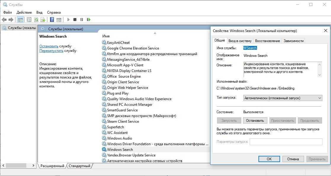 - Ищем службу Windows Search, нажимаем на нее двойным кликом и выбираем «Запустить».