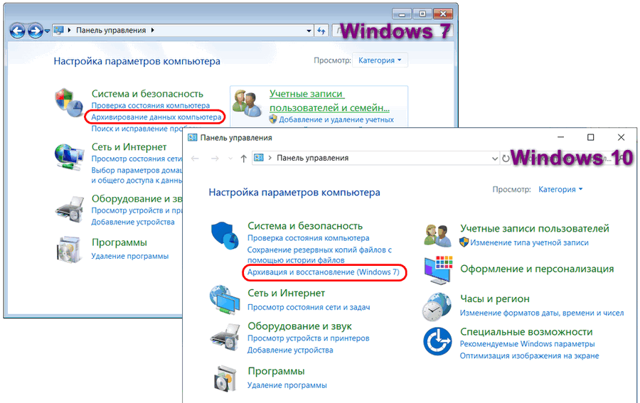Итак, архивация Windows – это создание бэкапа операционной системы её штатным функционалом. Но эта возможность полноценно реализована только в Win7 и Win10. Доступ к средству архивации системы в обеих версиях получим прямо на домашней страничке панели управления.