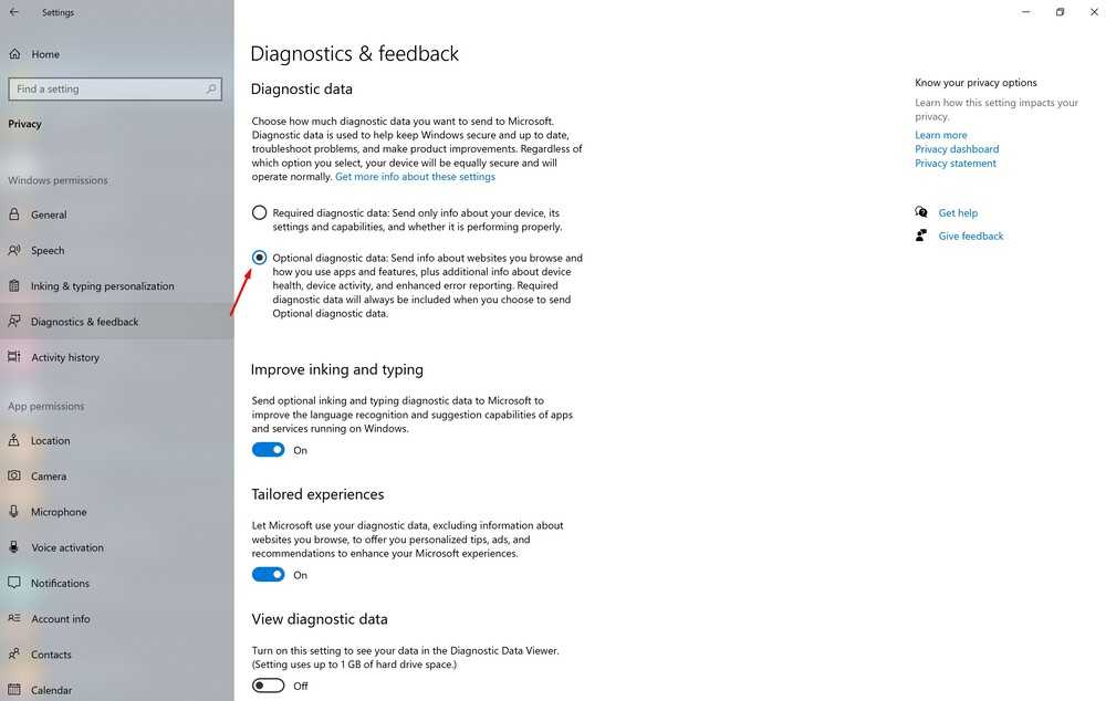 Также важно проверить, не выключены ли у вас настройки дополнительных диагностических данных. Это важно, потому что нужно учитывать желание Microsoft максимально понимать, как себя ведет новая Windows 11 на вашем устройстве