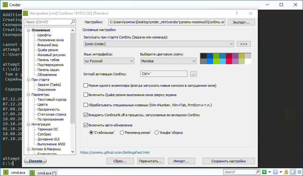 Настроек и опций в Cmder так много, что даже бывалому пользователю, не понаслышке знакомому с командной строкой, придется повозиться не один час, чтобы изучить все возможности инструмента. Cmder бесплатна, но у нее есть один существенный недостаток — ограниченная поддержка Windows 10.
