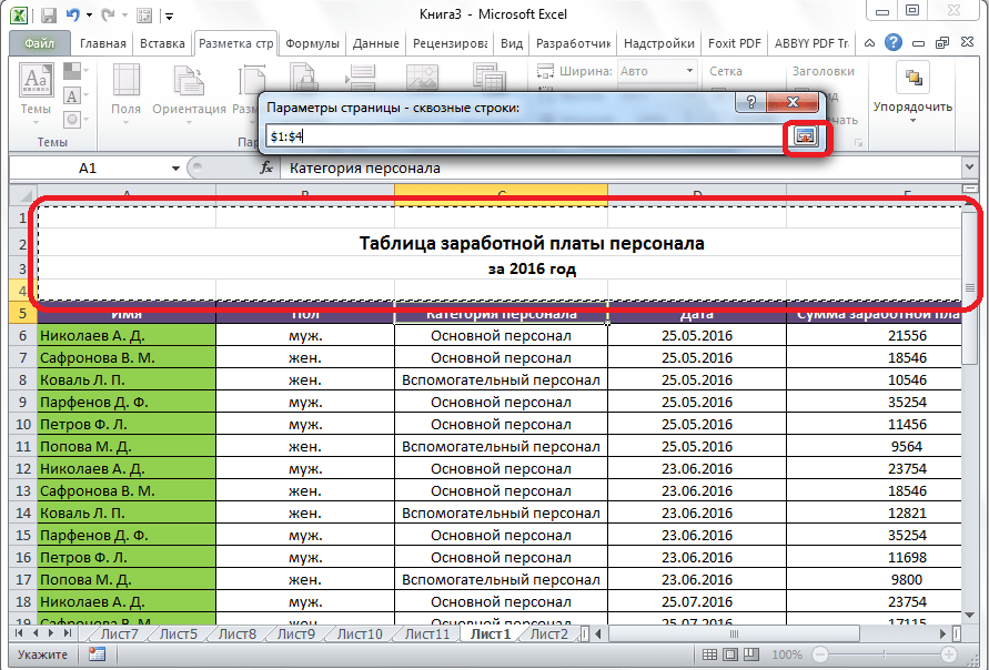Заголовок таблицы на каждой странице в Microsoft Excel