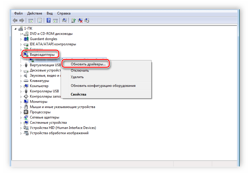 - Перейдите в раздел «Видеоадаптеры», затем кликните правой мышкой и выберите пункт «Свойства». Если видеоплата не отображается, попробуйте обновить драйвера и попробовать еще раз.